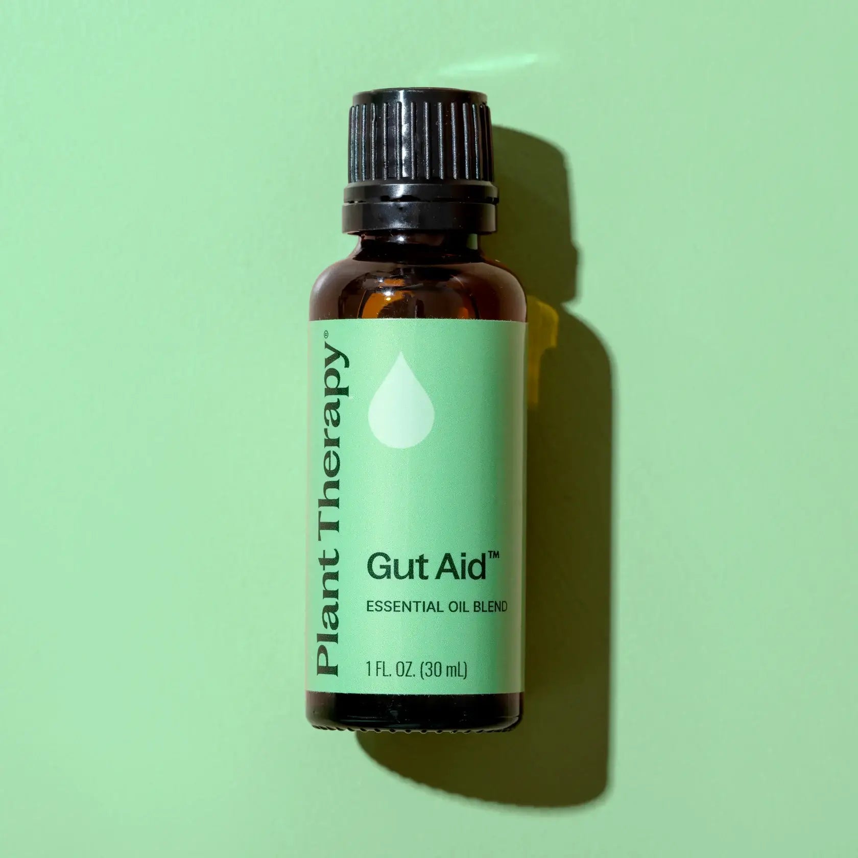 Gut Aid Essential Oil Blend combines Peppermint, Tarragon, Lemongrass, Sweet Fennel, Star Anise, and Ginger Root CO2 for an amazing minty-spice scent that promotes healthy digestion. Gut Aid helps provide natural comfort and relief for occasional digestive issues, including queasiness, gas, bloating, and indigestion. Formulated specifically to help support relief from stomach issues that range from feeling too full after having a hearty meal to having a queasy stomach. The next time you're hit with an upset stomach, reach for Gut Aid to help put your tummy troubles at ease.